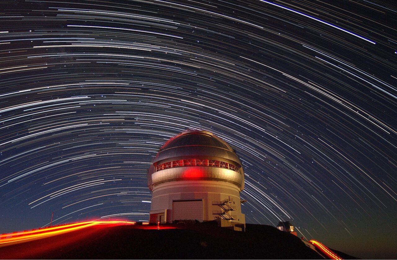 Star trails over the Gemini North Observatory. Credit: International Gemini Observatory.