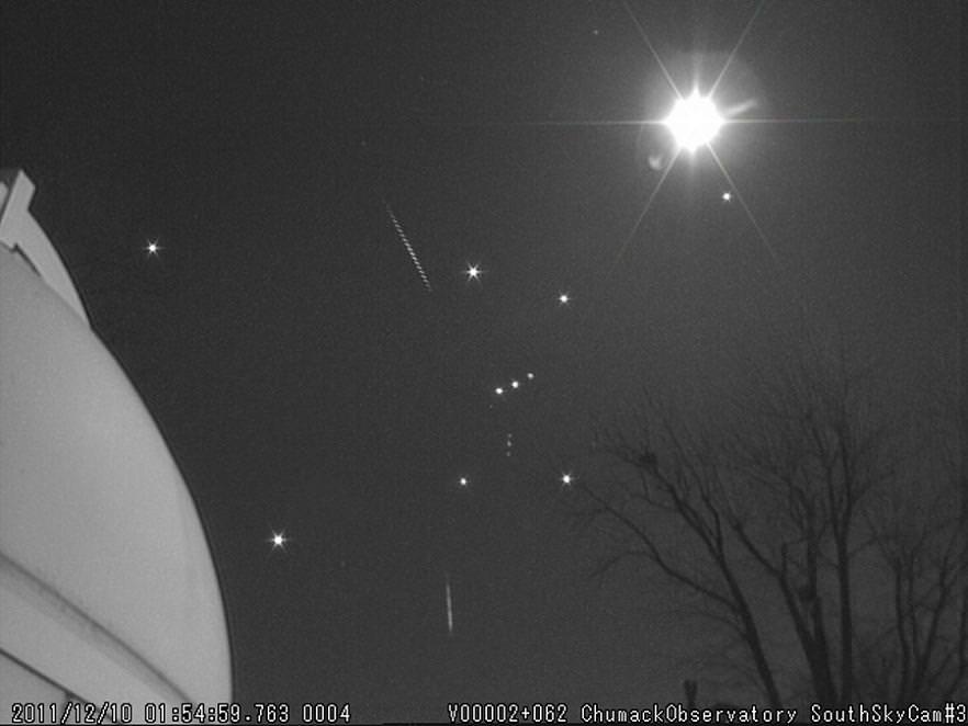 As you can see from this below video sent to us by John Chumack, even the bright moonlight isn't interfering too badly with this year's awesome Geminid meteor shower display. While it will make the fainter ones more difficult to observe, the "fireball" attitude of this meteor shower just won't quit!