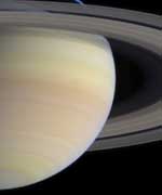 This image also offers a preview of the detailed survey Cassini will conduct on the planet's dazzling rings. Slight differences in color denote both differences in ring particle composition and light scattering properties.