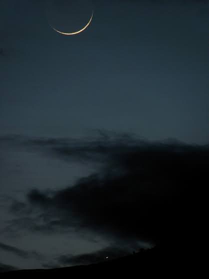 "A wonderful sunset conjunction this evening from Central Italy," Giuseppe wrote via email. "The Moon and Venus were both crescent, in an awesome sight! Some clouds entered the scene, and helped me filter the bright light of the 'evening star', revealing the little arch of the planet, from our point of view." He added that this is "the