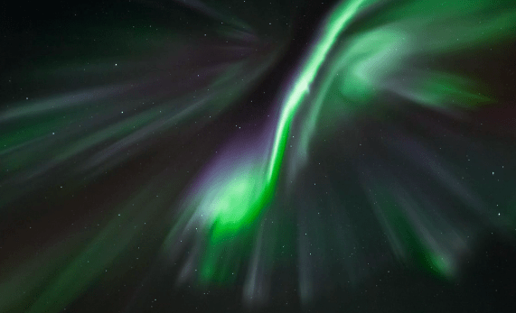The video is a merge of two parts; the first part contains some more wild and aggressive auroras, as well as a few Milky Way sequences, hence either auroras are moving fast because they are or they are fast due to motion of the Milky Way / stars. Still, some of the straight-up shots are very close to real-time speed -- although auroras mostly are slower, she can also be FAST!