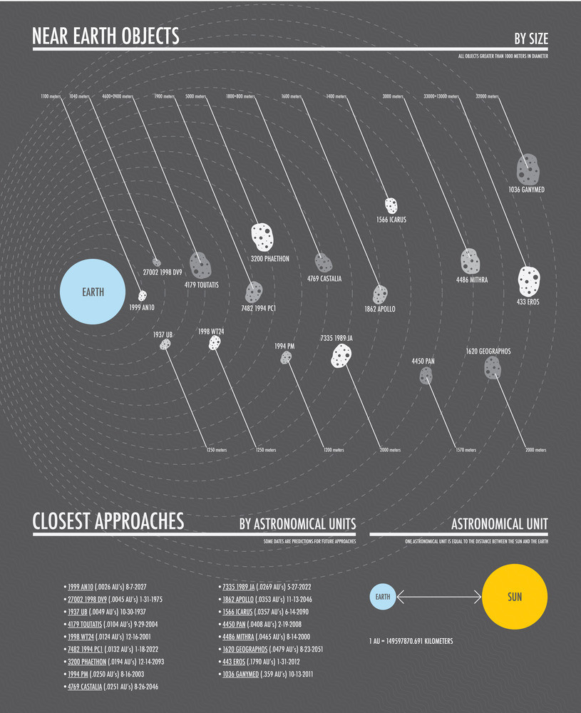 Vabolis said he created the graphic because he really enjoys creating projects outside of his curriculum to help hone his skills, plus it is just a fun pastime for him. "I've always been fascinated by outer space so I wanted to do a graphic within that subject," Vabolis said in an email. "I came up with the Near Earth Objects topic because it's a fairly current subject and after doing a little research I found that no one else had created such a graphic yet."