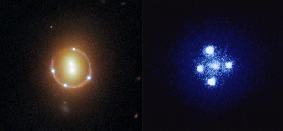 For their study, Amruth and his colleagues looked at several systems where gravitational lenses caused light from distant galaxies to appear in different places. In particular, they examined HS 0810+2554, a quadruply-lensed quasar that appears to us as it did about 9 billion years ago. Using detailed modeling, they calculated how DM would distort the light from this distant quasar based on the two leading candidate particles. Said Amruth: