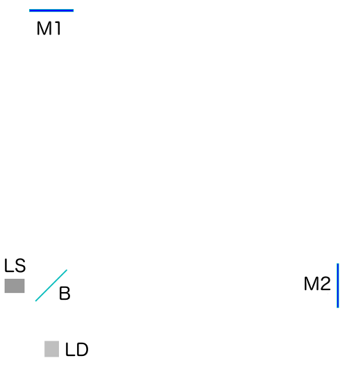 Light source LS, the two mirrors M1 and M2, the beamsplitter B and the light detector LD: all present and accounted for.