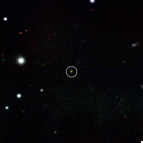 A really, really long time ago in a galaxy far away, a massive star exploded. On April 23, 2009, the Swift satellite detected that explosion. This spectacular gamma ray burst was seen 13 billion light years away, with a redshift of 8.2, the highest ever measured. As we hinted yesterday, this object is now the most distant known object, and the burst occurred when the Universe was only 630 million years old, a mere one-twentieth of its current age. This event, called GRB 090423, can tell us much about the early Universe. "We completely smashed the record with this one," said Edo Berger, a professor at Harvard University and a member of the team that first measured the burst's origin. "This demonstrates for the first time that massive stars existed in the early Universe."