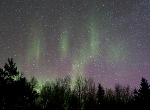 Like paw prints made by a cat, pale green auroral rays mark the northern sky around 5:45 a.m this morning March 17. Credit: Bob King[/caption]