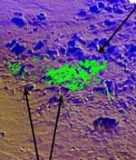 Astronomers have uncovered a green mineral on Mars called olivine that could indicate that the planet has been completely dry for at least a billion years, since the mineral was exposed to the Martian air. Olivine is found in many rocks on Earth, and it's highly susceptible to chemical weathering. If liquid water was present at any time in the past, the olivine would have altered into other materials - but this hasn't happened. The areas will be further investigated in 2005 by the upcoming Mars Reconnaissance Orbiter, which has 100 times the resolution of the Mars Global Surveyor.