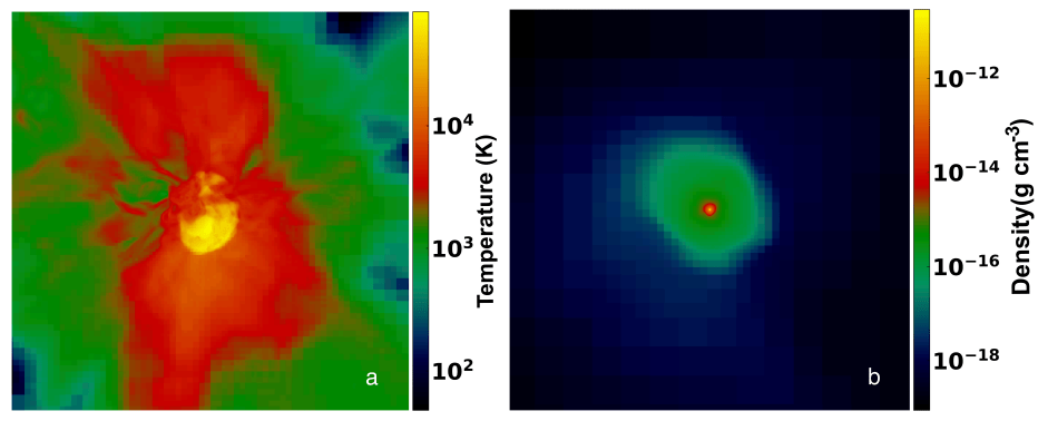 According to Whalen and his co-researchers, when these stars exploded, low-mass stars formed in the aftermath. Planetesimals formed around those stars, leading to the formation of potentially habitable, rocky worlds. This all happened before the first galaxies formed. These results are based on simulations the research team performed with Enzo.