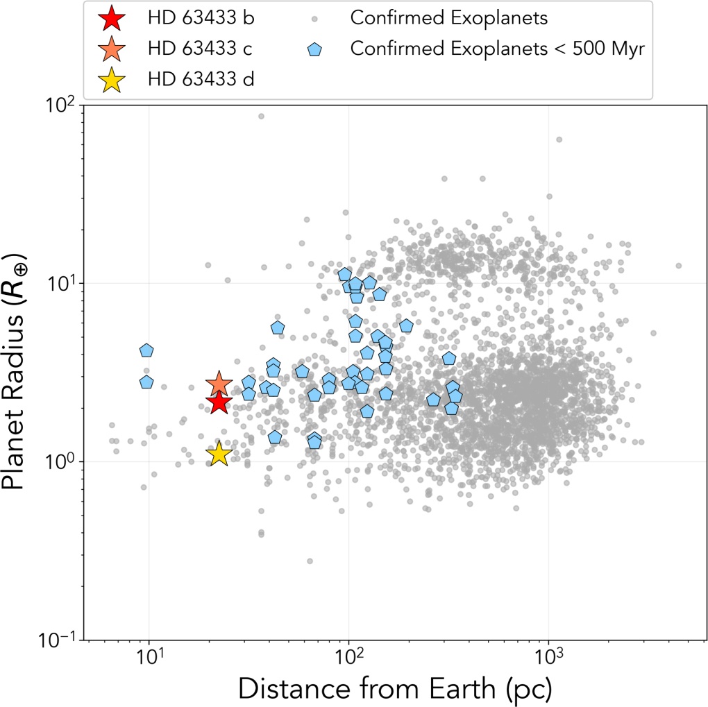 These mechanisms work on different time scales, and that's why the youthful HD 63433 d is such a compelling subject for study. Since its radius is below the radius gap, it's likely rocky. But if mass loss takes longer than 500 million years, it could still have a thick atmosphere. "Because Earth-sized planets orbiting young, Sun-like stars have so far been difficult to detect, HD 63433 d presents a particularly compelling case study for atmospheric investigations of close-orbiting Earth-sized planets," write the authors.