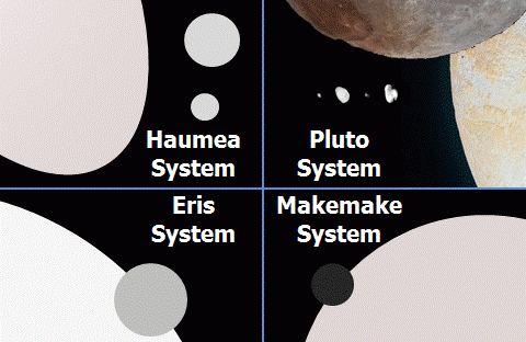 Dwarf planets Pluto and Haumea are considered cousins. Both of them, and their respective moons, are thought to be