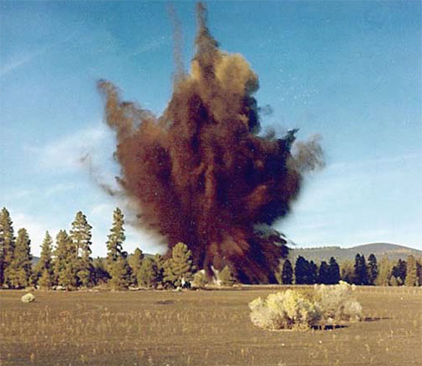 The Cinder Lake Crater Field is a replica Moon landing site near Flagstaff Arizona. Its volcanic gravel is a good analogue for Moon rock. NASA used tons of dynamite to create craters in the field for astronauts to train on. Over a four day period of controlled explosions, they recreated a portion of the Moon's surface.