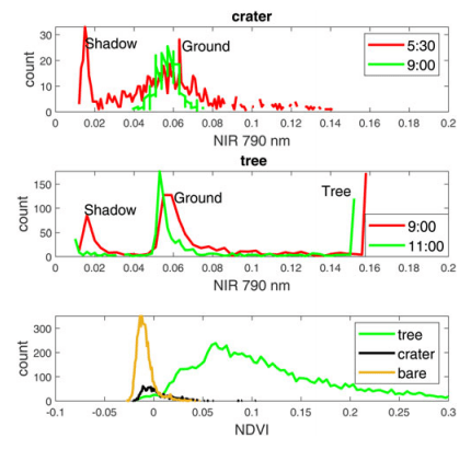 To test whether or not crater shadows were too similar to tree shadows, the team employed drones. They flew over the crater field during different times of day to image the shadows. The team found that crater shadows are in fact different enough from tree shadows.