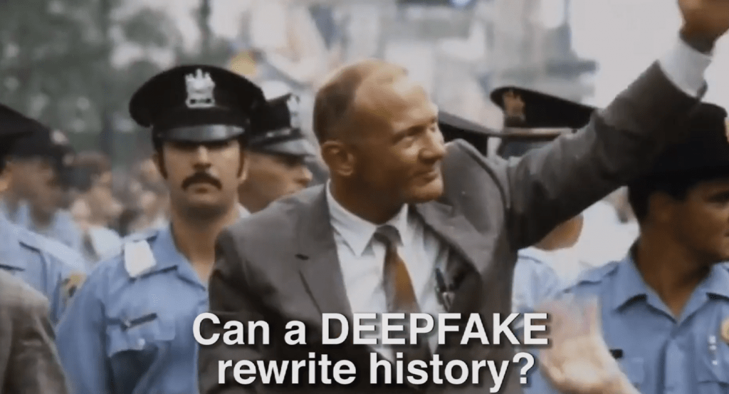 This Deepfake video is part of the In Event of Moon Disaster Project. The project comes from the MIT Center for Advanced Virtuality. As their website says, "We invite you into this alternative history and ask us all to consider how new technologies can bend, redirect and obfuscate the truth around us."