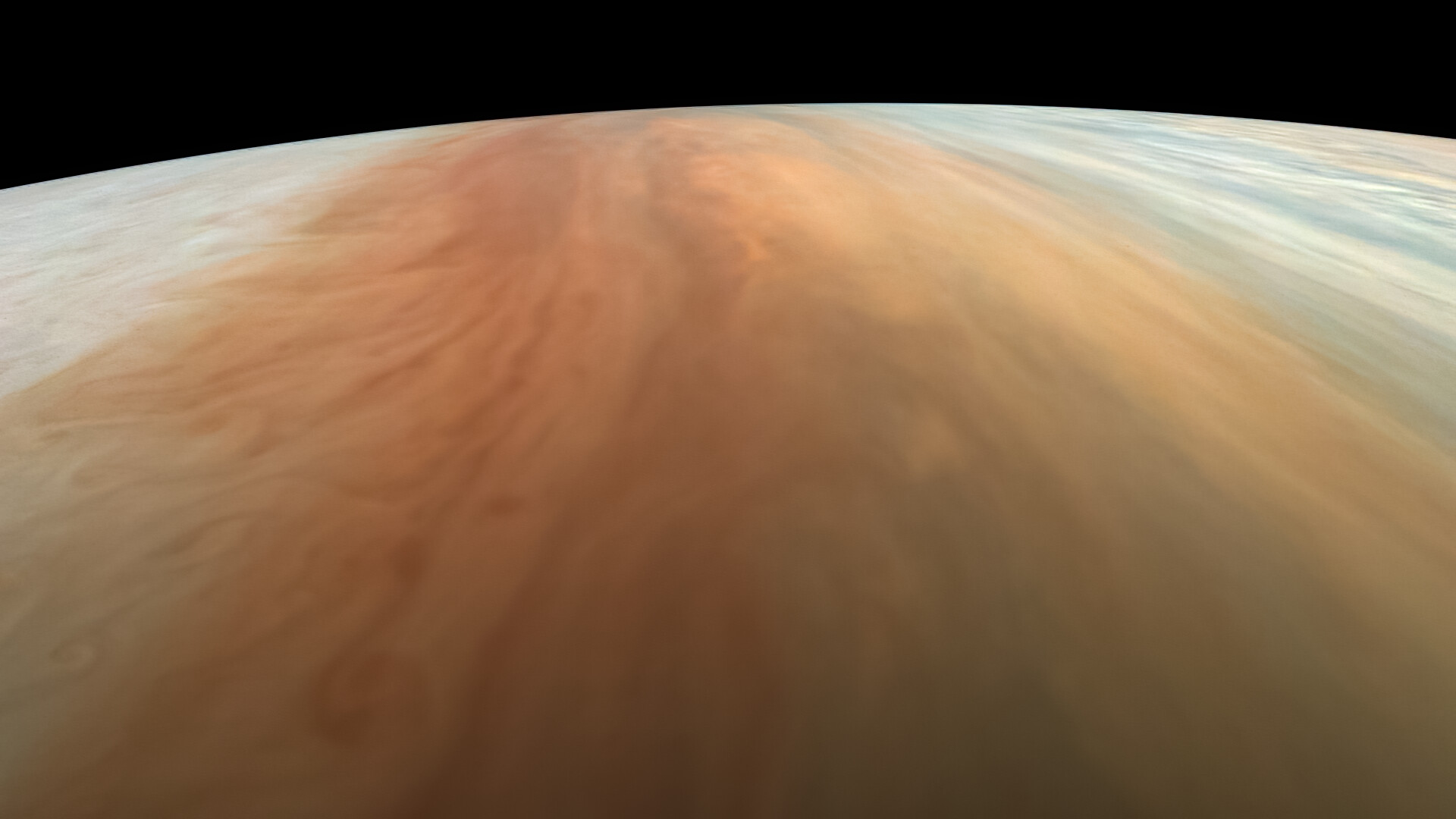 Citizen scientists are the ones who do all the image processing for Junocam, and one of our favorite image wizards, Kevin Gill, doesn't disappoint with these latest views of from the solar-powered spacecraft zooming over Jupiter's swirling atmosphere, collecting data from a unique vantage point no other spacecraft has enjoyed. While Juno was actually 5,361.5 kilometers above the clouds at the time of image, Kevin lowered the camera perspective artificially to an equivalent of ~3,000 km.