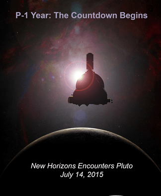 A NASA "poster" marking the one year to Pluto encounter by New Horizons. Credit: NASA[/caption]