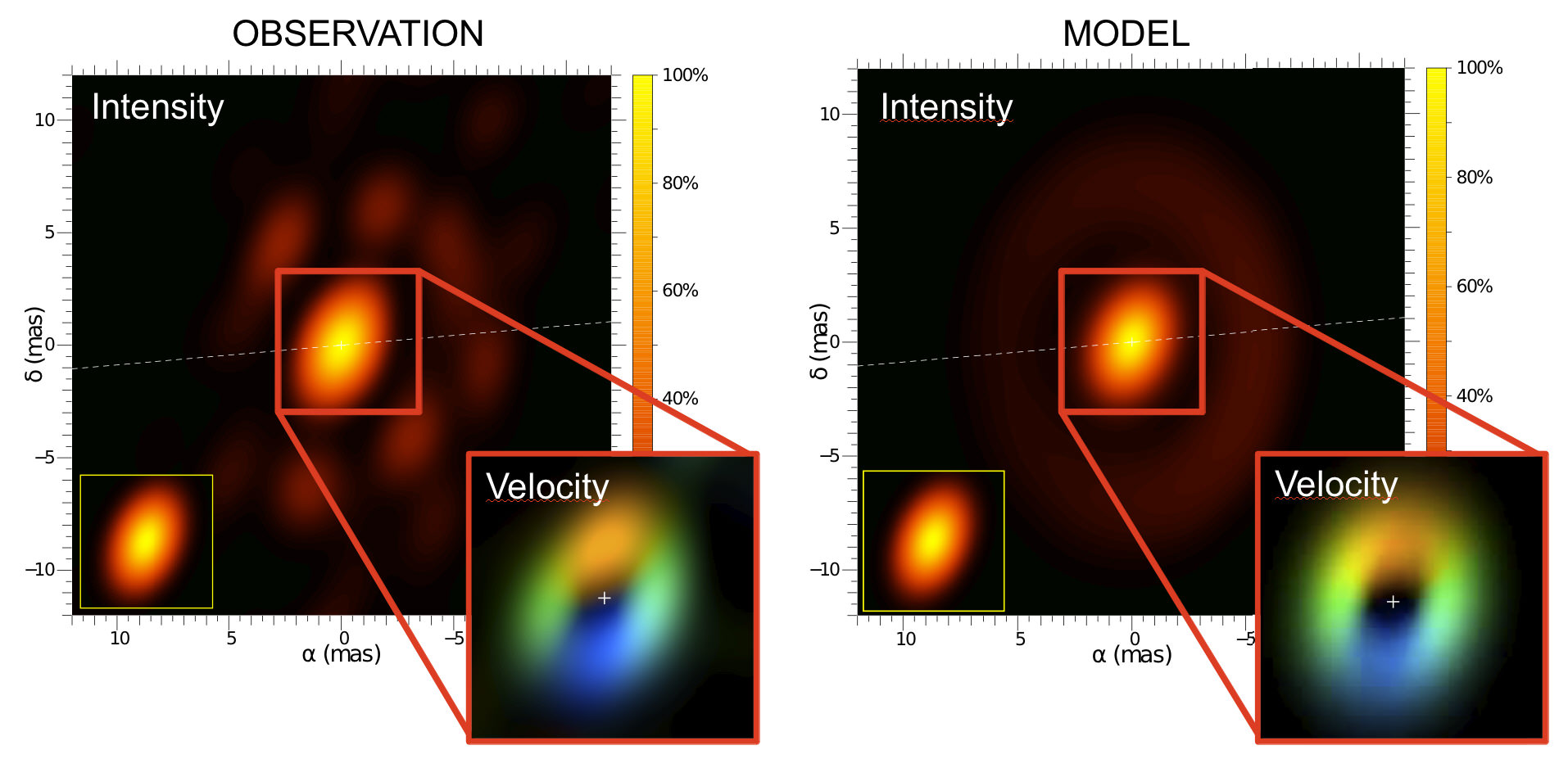 "Our new 3D image locates the dust-forming region around HD 62623 very precisely, and it provides evidence for the rotation of the gas around the central star," said co-author Anthony Meilland from Max Planck Institute for Radio Astronomy. "This rotation is found to be Keplerian, the same way the Solar system planets rotate around the Sun."