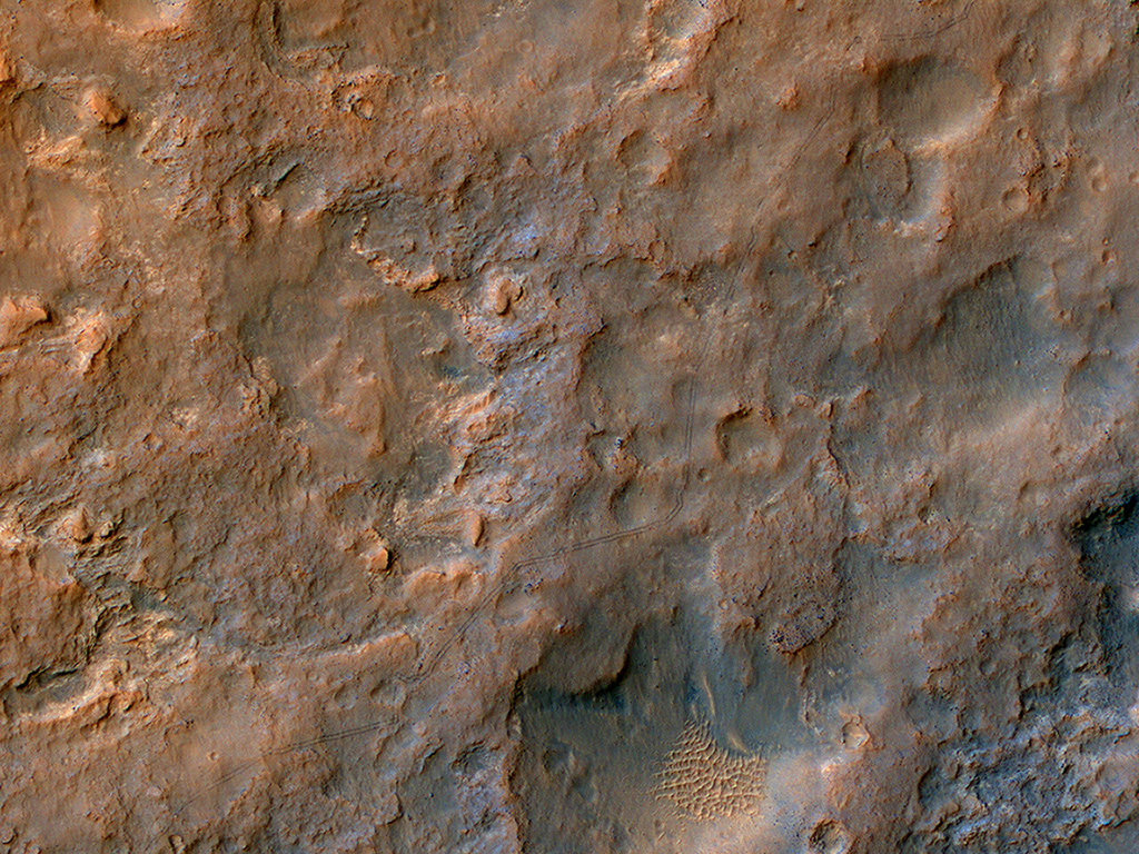 HiRISE principal investigator Alfred McEwen explained the image: "Curiosity is progressing from the bright dust-covered area to a region with a darker surface, where saltating sand keeps the surface relatively free of dust. The scenery seen by the rover will be getting more interesting as it progresses toward Mount Sharp."