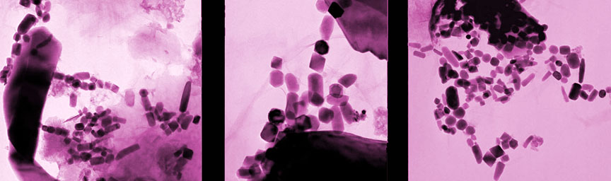 These are transmission electron microscope images showing tiny magnetofossils containing iron-60, a form of iron produced during the violent explosion and death of a massive star in a supernova. They were deposited by bacteria in sediments found on the floor of the Pacific Ocean. Click for more details. Credit: courtesy Marianne Hanzlik, Chemie Department, FG Elektronenmikroskopie, Technische Universität München[/caption]