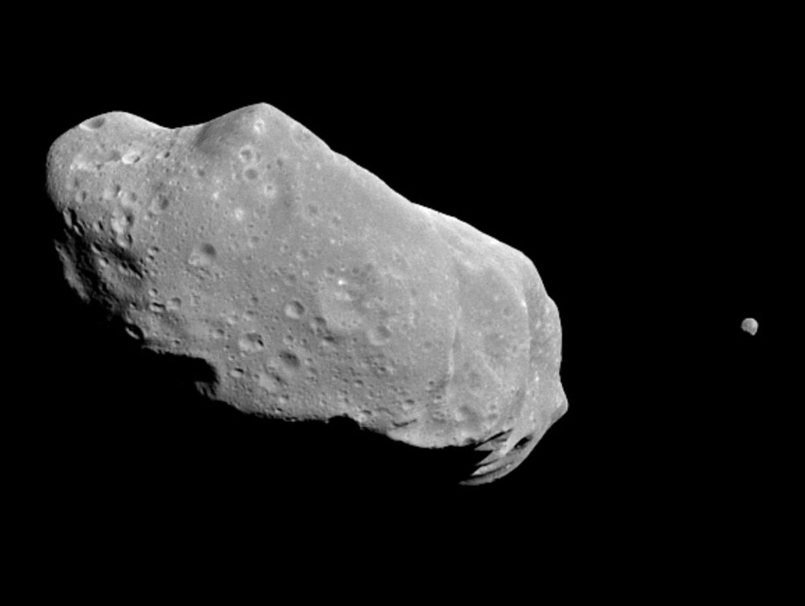 Inset image: the 56-km (35-mile) wide asteroid Ida and its satellite, seen by the Galileo spacecraft in 1993. (NASA)