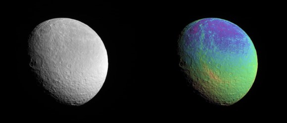 Rhea has at least two major sections, the first being bright craters with craters larger than 40 km (25 miles), and a second section with smaller craters. The difference in these features is believed to be evidence of a major resurfacing event at some time in Rhea's past.