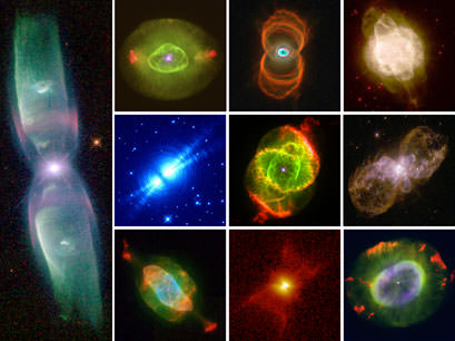 A recent study has added two more planetary nebulae to the list of those with known binary centers: NGC 6326 (shown right) and NGC 6778. Collimated outflows and jets were discovered in both cases. The authors also note that both nebulae have filaments with low ionization. Such structures have been noted previously, but their cause has remained uncertain. A 2009 study suggested that they may be the result of tight binaries, a hypothesis that is strengthened by the the new discovery. The overall shape of NGC 6326 is mostly elliptical while NGC 6778 is bipolar.
