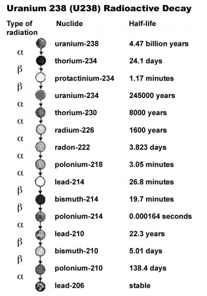 By measuring the half lives of radioactive isotopes, geologists were able to build a measurement ladder that let them accurately calculate the age of geologic formations, including the Earth. They used the decay of uranium into various isotopes of lead. By measuring the amount of three different isotopes of lead (Pb-206, Pb-207, and Pb-208 or Pb-204), geologists can calculate how much Uranium was originally in a sample of material.