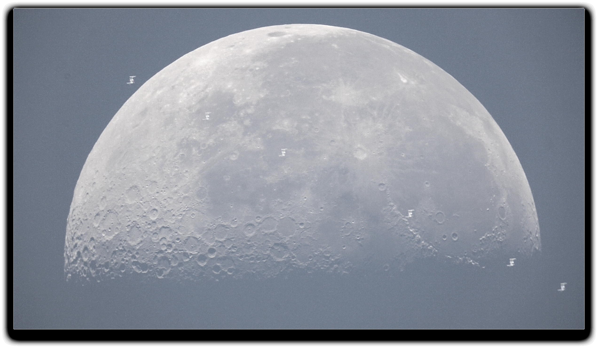 For an interesting comparison, here's an image of the ISS crossing in front of the Moon: