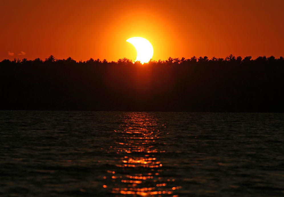 Nowhere will this eclipse be total. At best, polar bears and musk oxen in Canada's Nunavut Territory near Prince of Wales Island will see 81% of the sun covered at sunset at maximum eclipse. Most of the rest of us will witness about half the Sun covered with the northern U.S. getting around 65% and the southern states closer to 40%. In Minneapolis, Minn. for instance, the eclipse begins at 4:23 p.m. CDT, reaches a maximum of 62% at 5:35 p.m. and continues on till sunset at 6:14 p.m. For times, coverage and other local circumstances for your town, click over to