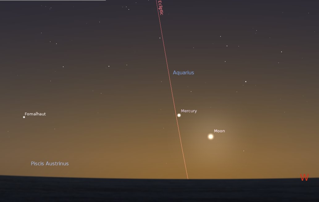 The orientation of the Moon and Mercury on the evening of February 1st. Credit: