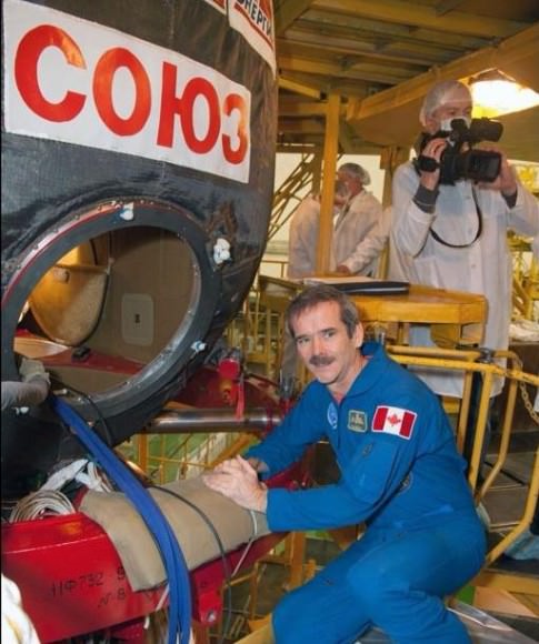 "Hatch to Another World - what it looks like to climb into a Soyuz spaceship. We then crawl down into our seats," Hadfield said, via Twitter.