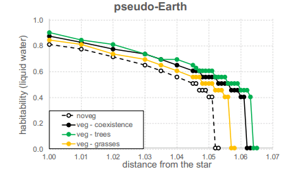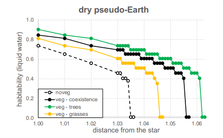 "This endeavour should be seen as a first step of a research program aimed at including the main climate-vegetation feedbacks known for Earth in exoplanetary habitability assessments," they write.