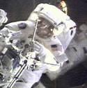 During the first half of the spacewalk, mission specialist Nancy Currie operated the shuttle?s robotic arm, providing transportation to and from the various worksites on both the Hubble and in Columbia?s payload bay ? Commander Scott Altman then took over operation of the arm to maneuver Massimino through his tasks.
