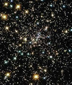 Here, the stars are jam-packed together. The stellar density is about a million times greater than in our Sun's stellar neighborhood. The stars are only a few light-weeks apart, while the nearest star to our Sun is over four light-years away.