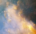 The Hubble images of the Dumbbell show many knots, but their shapes vary. Some look like fingers pointing at the central star, located just off the upper left of the image; others are isolated clouds, with or without tails. Their sizes typically range from 11 - 35 billion miles (17 - 56 billion kilometers), which is several times larger than the distance from the Sun to Pluto. Each contains as much mass as three Earths.