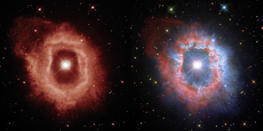 Now the people behind the Hubble have released another image, or rather images, of AG Carinae. It's made up of Hubble observations of the star from 2020, 2014, and also as far back as 1994. AG Carinae is a luminous blue variable (LBV) and its appearance changes over time. The images bring those changes to life.
