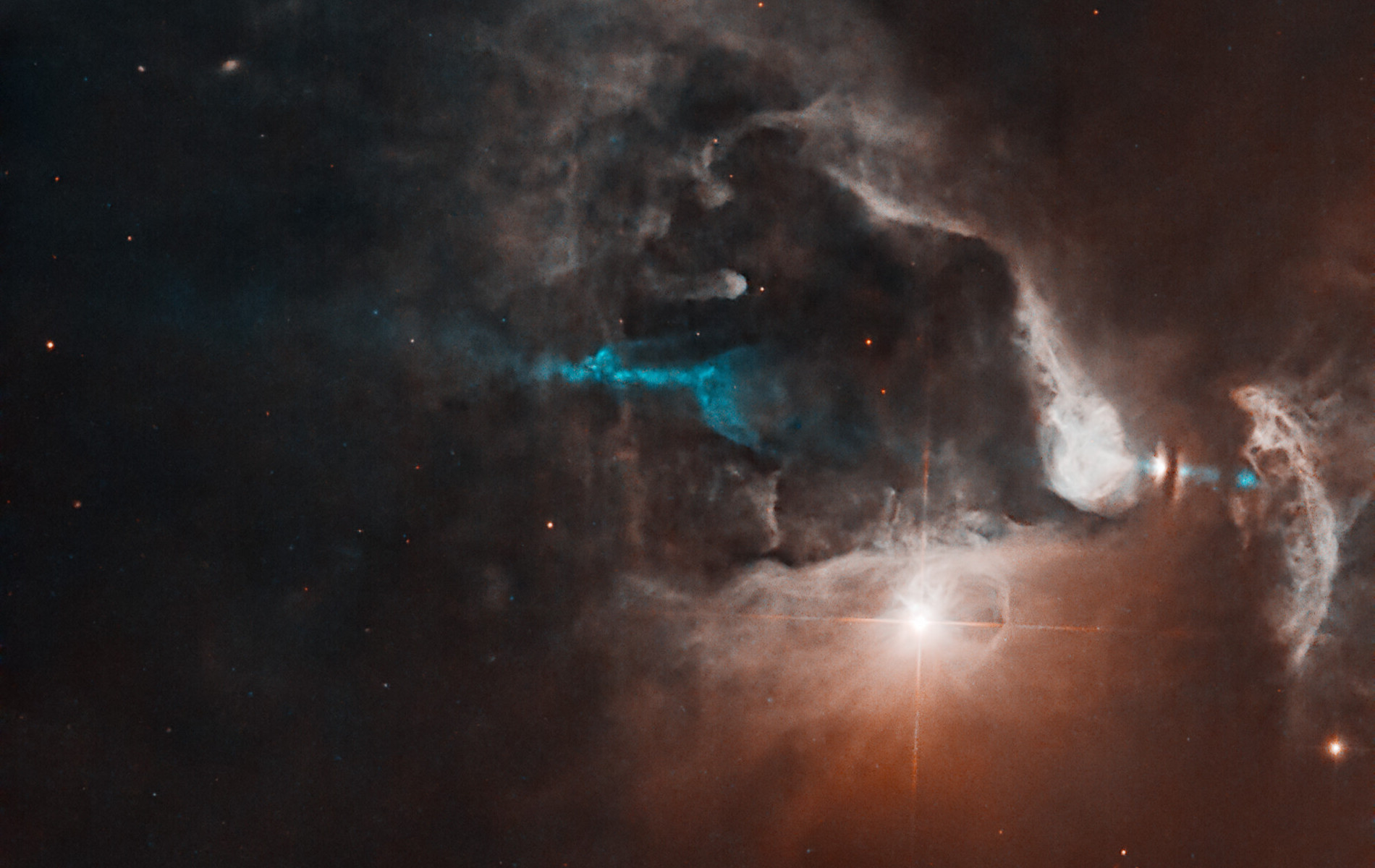 You can also see that the protostar has begun to produce radiant jets, which are reflected against the dusty nebula as regions of blue light. Because of this reflected light, FS Tau B is classified as a Herbig-Haro (HH) object. HH objects are great for helping astronomers understand the early dynamics of these stars.