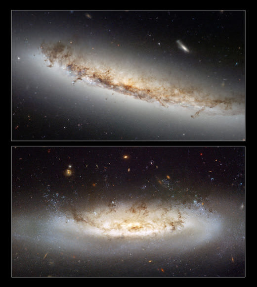 The two galaxies -- NGC 4522 and NGC 4402 – were imaged by the old Advanced Camera for Surveys on Hubble before it suffered from a power failure in 2007. Astronauts on Servicing Mission 4 in May 2009 were able to restore ACS during their 13-day mission.