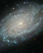 Dr. Riess imaged NGC 3370 with Hubble in early 2003. His science only required looking at NGC 3370 in two filters that covered the visual and infrared portions of the spectrum. By teaming up with the Hubble Heritage Project, a third blue filter was added to the data to produce the composite three-color image that is shown.