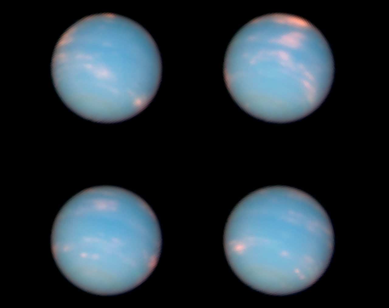To celebrate the first complete orbit of the planet Neptue since its discovery in 1846, the Hubble Space Telescope took a series of images with the Wide Field Camera 3, showing the different faces of the planet as it rotates on its axis. The images were take on June 25-26, 2011.