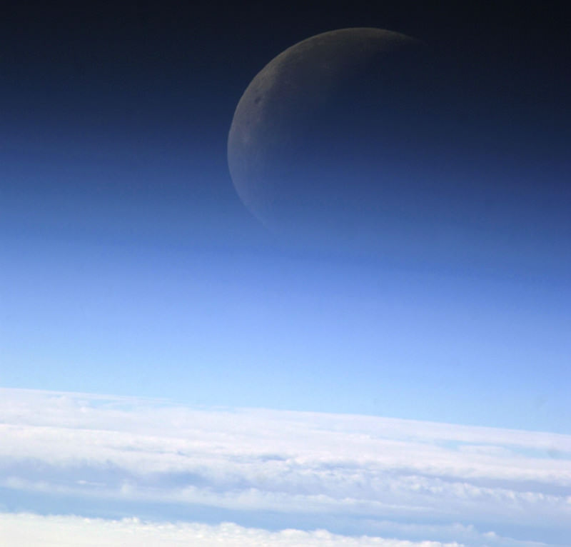 Inset images - Top: layers of the atmosphere, via the Smithsonian/NMNH. Bottom: Scanning electron microscope image of atmospheric bacterial spores collected from Mt. Bachelor Observatory (NASA/KSC)