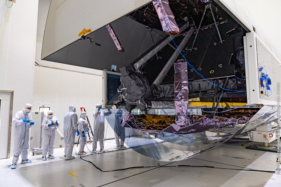 It was then loaded aboard the MN Colibri (a French cargo vessel) and began its journey down the coast towards the Panama Canal and French Guiana. With the mission safely there in one piece, the crews have unpacked it and set it in its launch configuration. Soon, it will be loaded aboard a payload capsule atop an Ariane 5 rocket and take off from the ESA's Spaceport in Kourou. The transportation of Webb from California to the launch site, and the launch services that will be provided soon, are part of the ESA's contribution to the mission.
