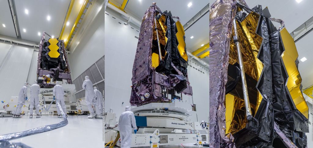 These events were captured in a series of beautiful images recently shared by the Guyanese Space Center, the European Space Agency (ESA), and NASA via their JWST Twitter accounts (more are posted on the NASA JWST Flickr page). This process involved carefully lifting the telescope from its packing container and raising it vertically, the same configuration Webb its launches to space aboard an Ariane 5 rocket.