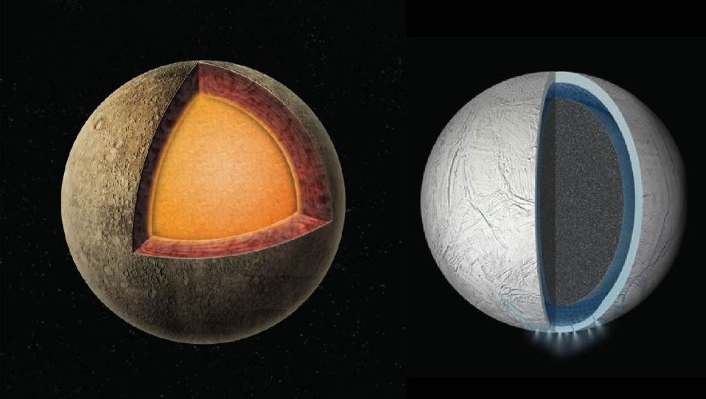 Mercury, for example, has a thin crust over a large metallic core and has lobate scarps. They are likely caused by compression strain as Mercury's interior cools. Enceladus, on the other hand, has a thin icy crust over an ocean layer and has a "tiger stripe" pattern to its mountains. Other icy moons such as Europa have linear features. Each of these worlds has mountain features driven by the interaction between crust and interior. So the question is whether the crust and interior of a neutron star behave in a way similar to any of these.
