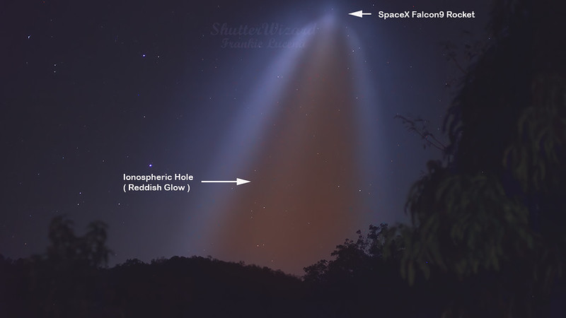 A SpaceX launch punches a hole in the ionosphere over Puerto Rico. Credit: Frankie Lucena.