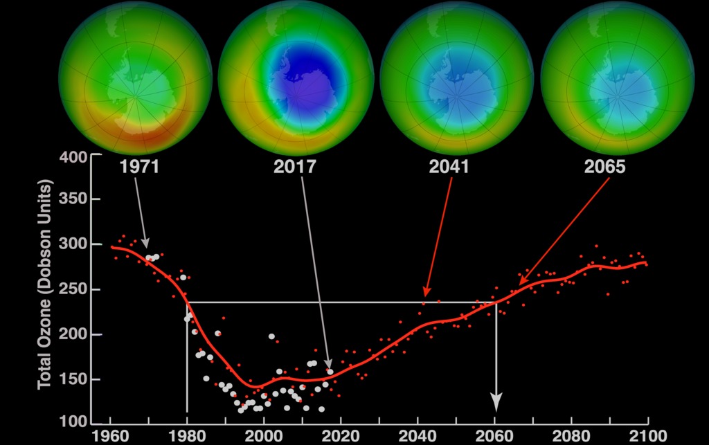 *Ozone recovery, observed and projected over the Antarctic. Credit: NASA*