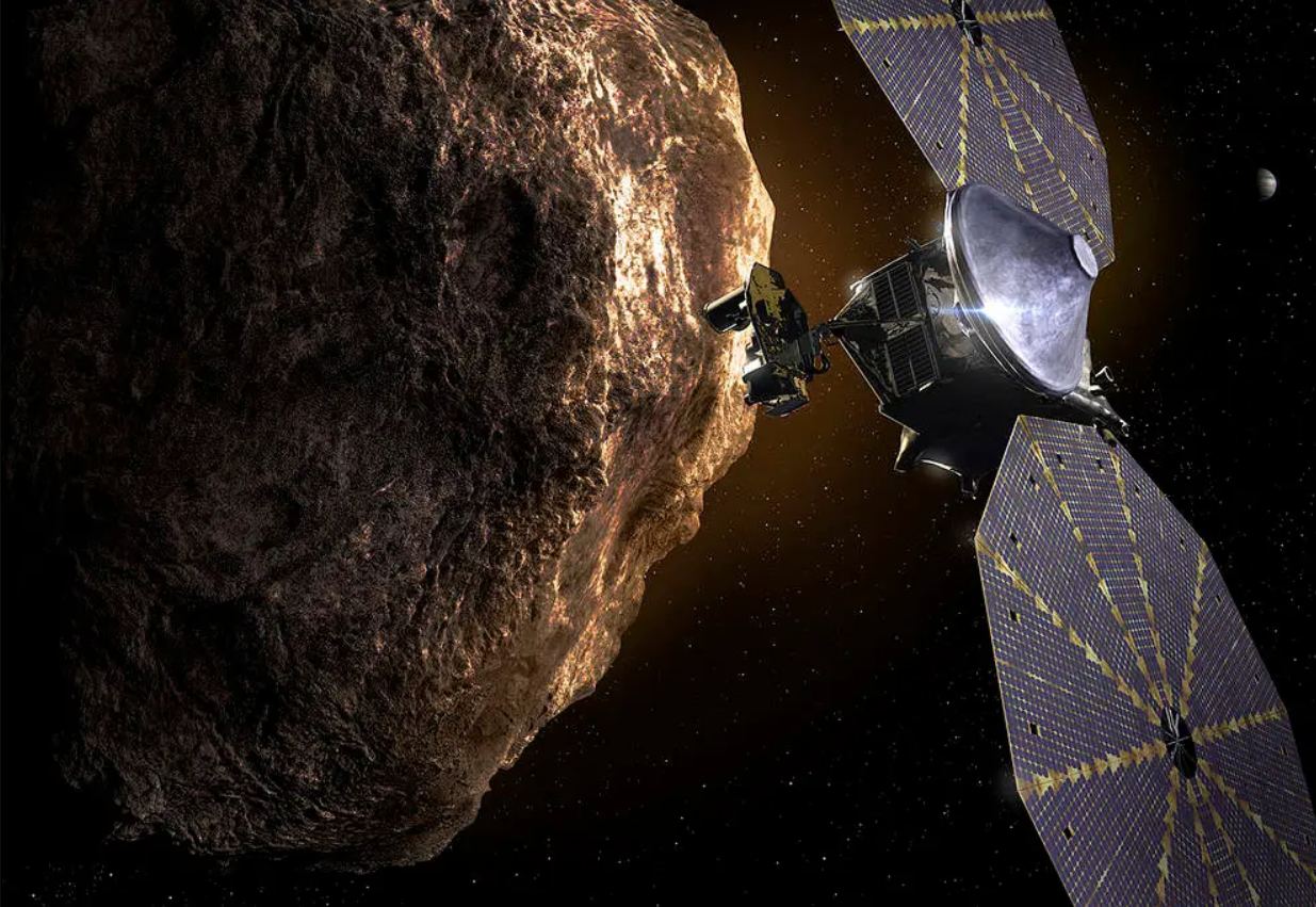 Artist's conception of the Lucy mission to the Trojan asteroids.