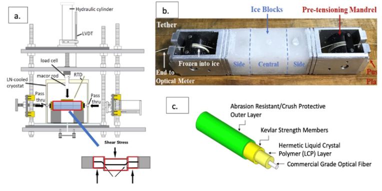 The shear tests showed promise. According to a press release, the "... results demonstrated a surprisingly high level of tether robustness across the range of temperatures and ice fault slip velocities expected on ocean worlds like Europa and Enceladus."