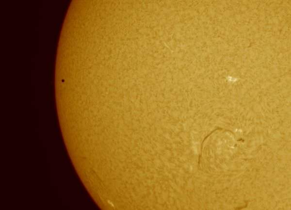The black dot of Mercury, along with a lone sunspot group currently turned Earthward. Image credit and copyright: