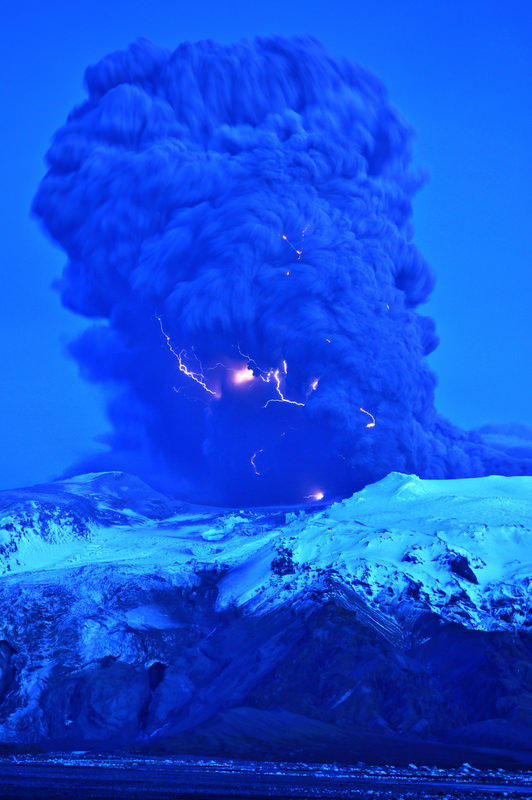 Gudmundsson said he and other photographers were a safe distance from the eruption, but were a few kilometers away. "Nearby was a small river and its prominent sound prevented us from hearing much in the eruption itself except a loud roar from thunders from time to time," he said. "During daylight we even glimpsed some lightning but at dusk (the photo is taken at about 22:00 in the evening) they were easily spotted especially during active periods of explosions."