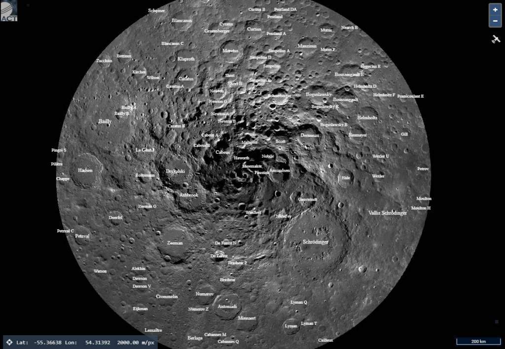 The Vikram lander was supposed to touch down between two craters: Simpelius N and Manzinus C about 600 km (372 miles) from the Moon's south pole. On September 10th, ISRO has said they've located the lander but are still gathering data to determine what happened. But NASA says the location hasn't been revealed. Since the lander was only 2.1 km above the surface when it deviated from its course and contact was lost, it must be in this image somewhere.